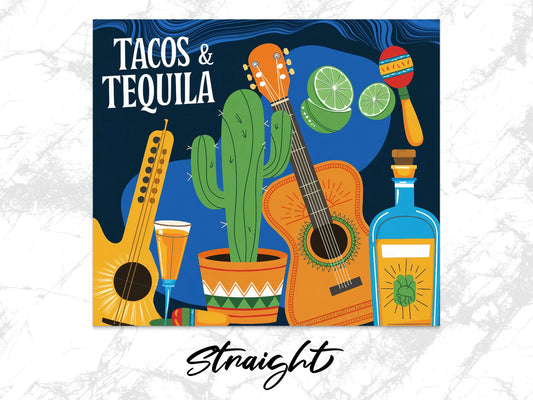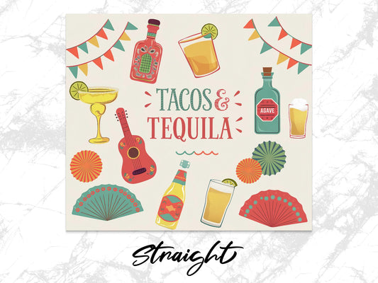 Tacos and Tequila Tumbler Wrap, 20oz Straight or Tapered, Skinny Tumbler Wrap PNG, Festive Party Drink Design, Commercial Use