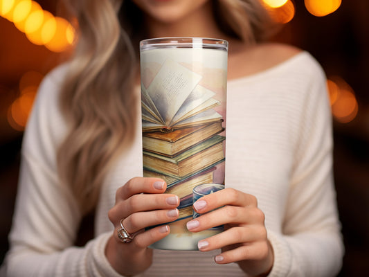 Vintage Book Lover Tumbler Wrap, Literary Theme Skinny Tumbler 20oz, Digital Download, Antique Library Bookstack Design
