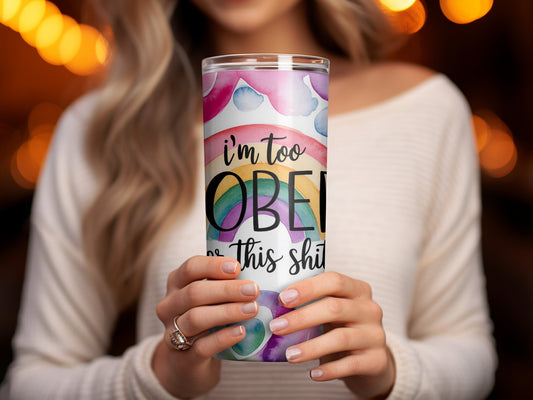 Too Sober For This Shit Rainbow Tumbler Wrap PNG, 20oz Skinny Tumbler Commercial Use, Colorful Swirls Tumbler Design