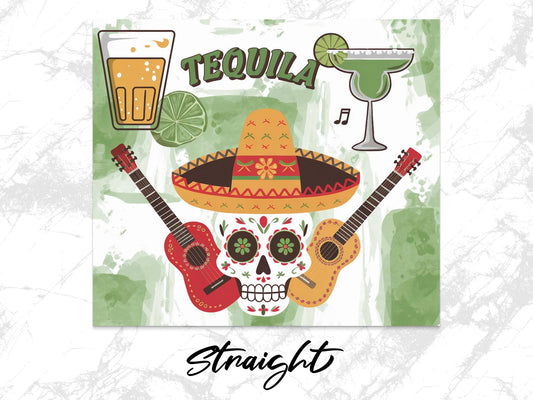 Tequila Tumbler Wrap PNG, Mexican Fiesta Skinny Tumbler Design, Day of the Dead 20oz Wrap, Guitar Sombrero Art Digital Download