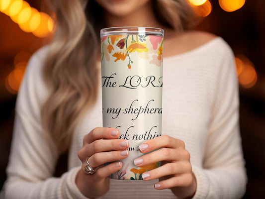 The LORD is my shepherd I lack nothing PNG 20oz Skinny Tumbler Wrap floral design Christian Psalm 23 1 digital download