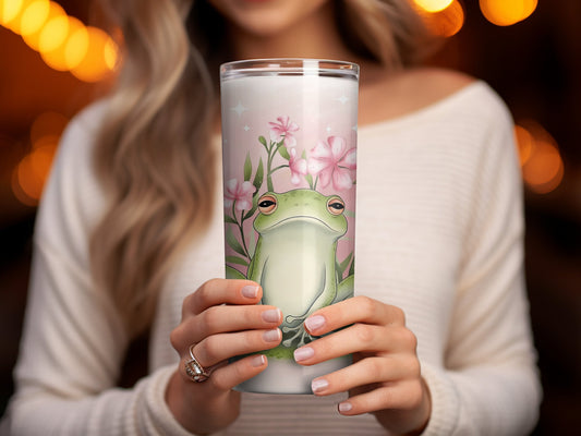 Cute Frog with Flowers 20oz Skinny Tumbler PNG Commercial Use, Adorable Frog Tumbler Design, Digital Download for Tumblers