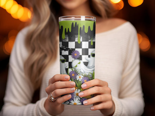 Dripping Green Slime Checkered Pattern 20oz Skinny Tumbler Digital Design Floral PNG Commercial Use Tapered Straight