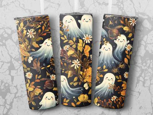Cute Ghost Fall Tumbler Wraps, Autumn Digital Tumbler Design, 20oz Skinny Tumbler Sublimation, Commercial Use, Halloween Tumbler PNG