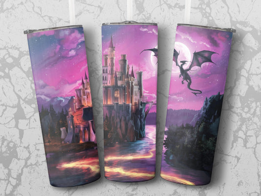 Fantasy Castle Dragon 20oz Skinny Tumbler Wraps, Digital Download Tumbler Sublimation Design, Png Commercial Use Tumbler Wrap