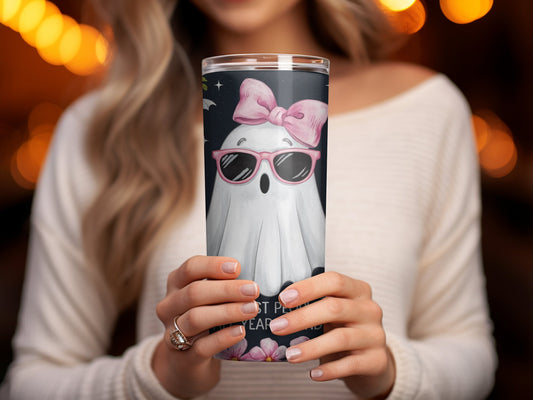 Cute Ghost Tumbler Wrap, Halloween Skinny Tumbler Design, 20oz Tumbler PNG, Halloween Digital Download, Ghost Tumbler Sublimation,