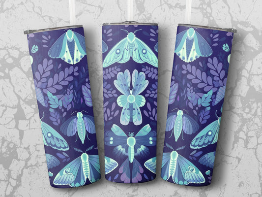 Dragonfly and Moth Pattern, Magical Insect Design, 20oz Skinny Tumbler Wraps, Digital Download, Commercial Use Included