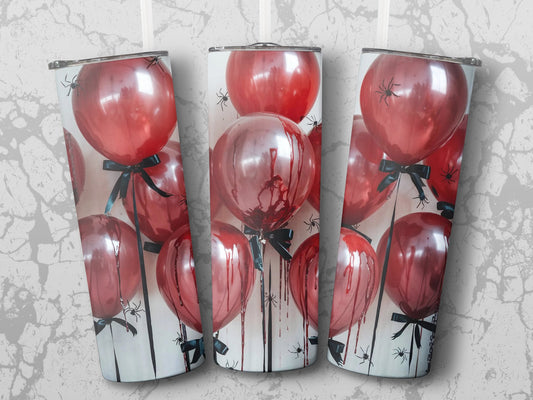Creepy Balloon Design Tumbler png, Straight Tapered Tumbler Wraps, 20oz Skinny Tumbler Wraps for Commercial Use, Horror Theme Cups