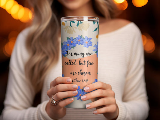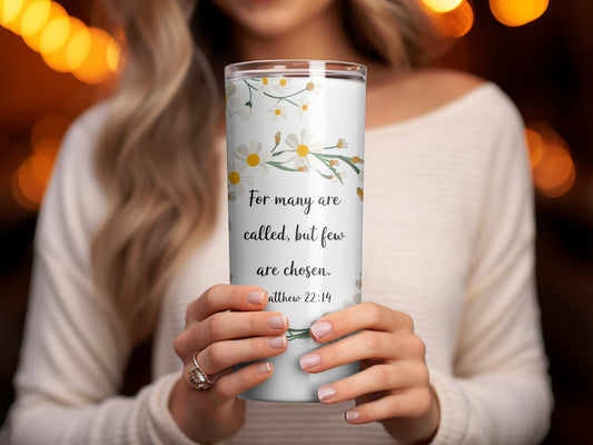 For many are called but few are chosen Mattew 22 14, 20oz Skinny Tumbler Wrap, Daisy Flower Design, Digital PNG, Commercial Use