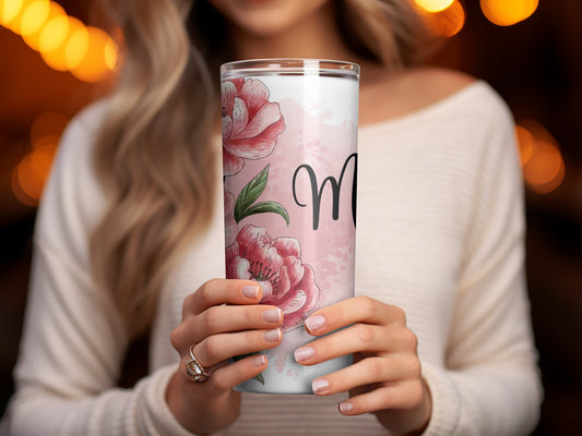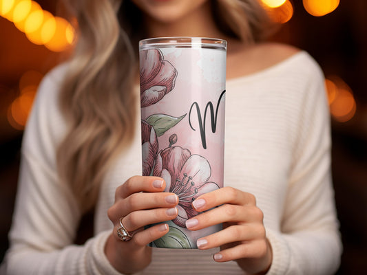 Floral Initials PNG, 20oz Skinny Tumbler Design, Straight Tapered, Personalized Monogram Wrap, Digital Download Art, Commercial Use