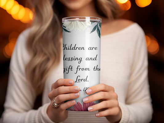 Floral 20oz Skinny Tumbler Wrap, Children are a Blessing Quote, Christian Tumbler PNG, Digital Download, Commercial Use