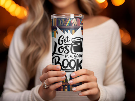 Get Lost In A Good Book Tumbler Wrap, Library Books Skinny Tumbler Wrap, 20oz Tapered Straight PNG, Digital Download