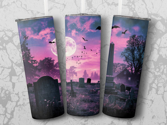 Spooky Halloween Graveyard Tumbler Wrap, Witching Hour Skinny Tumbler PNG, Digital Download 20oz Tumbler Wraps, Eerie Night Tumbler Art