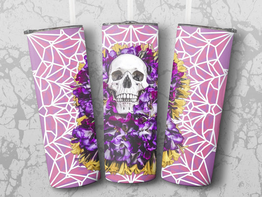 Skull Floral Tumbler Wraps, Purple Floral Skull Skinny Tumbler PNG, 20oz Skinny Tumbler Design, Halloween Tumbler Wrap Digital Download
