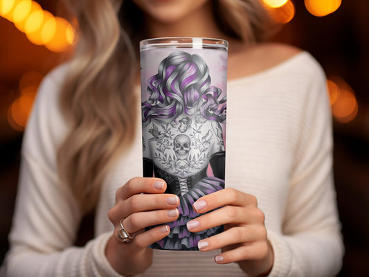 Gothic Skull Woman Tumbler Sublimation PNG, 20oz Skinny Tumblers Design, Purple Hair Tumbler Wrap, Digital Download, Commercial Use