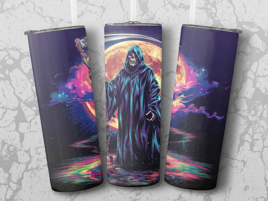 Grim Reaper Digital Art Tumbler Wrap, 20oz Skinny Tumbler Wraps, Halloween Grim Reaper Wrap, Commercial Use PNG, Spooky Tumbler Wrap