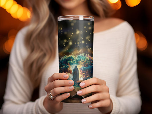 Magical Book with Enchanted Forest Digital Art, 20oz Skinny Tumbler Wrap, Straight and Tapered PNG File, Commercial Use