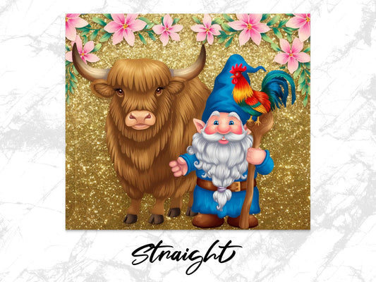 Highland Cow Gnome Wrap Tumbler PNG, 20oz Skinny Tumbler Wrap, Fairy Tale Gnome Digital Download, Commercial Use Files