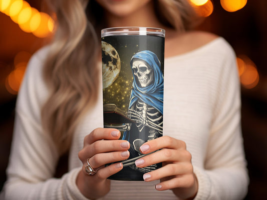 Skeleton Reaper 20oz Skinny Tumbler PNG, Grim Reaper Halloween Tumbler Digital Download, Skeleton Reaper Cup Design, Commercial Use