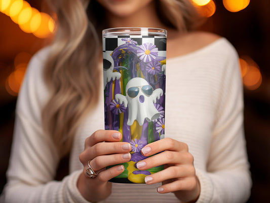 Spooky Ghost with Sunglasses PNG, Halloween Decor, 20oz Skinny Tumbler, Digitally Handcrafted, Commercial Use, Straight Tumbler Wrap