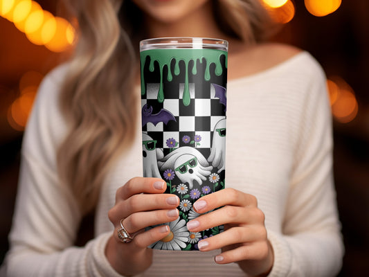 Dripping Green Slime Checkered Pattern 20oz Skinny Tumbler Digital Design Floral PNG Commercial Use Tapered Straight