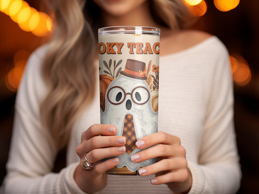 Spooky Teacher Ghost Tumbler Design, 20oz Skinny Tumbler PNG, Cute Halloween Print, Commercial Use Digital Download